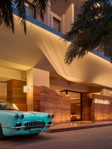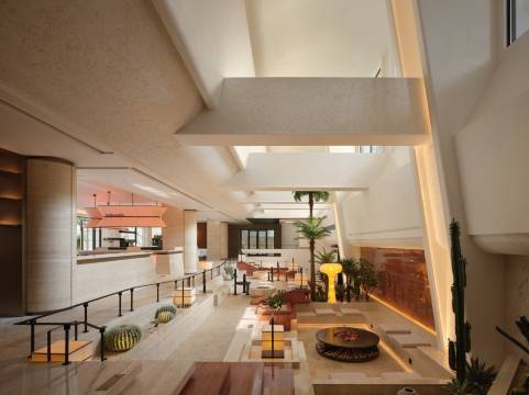 设计很有特色,下沉式大堂安静有格调,适合拍照。门口的蒂芙尼蓝色老爷车是亮点之一。大堂还设有自助饮品吧,入住期间可随时取用冰饮,体验贴心。