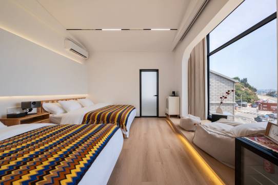 房间宽敞明亮,落地窗就能看到海,非常满意。适合一家出游居住,出酒店就能赶海,小朋友开心的不得了,很棒