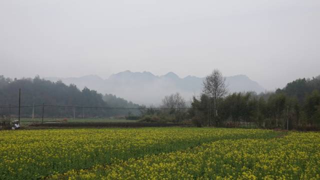 遥望齐云山的云海 外面油菜花开得刚好