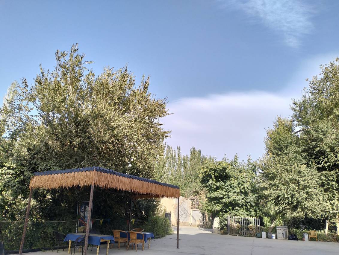 距离景区走路就能到!是一家独立的院子!周围都是果园!空气好!安静!晚上坐在院子里能看到星空!很是惬意!老板热情!房间干净!空间大!出行方便!做公交也很方便!敦煌最近的天气特别好!