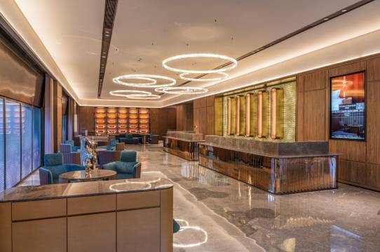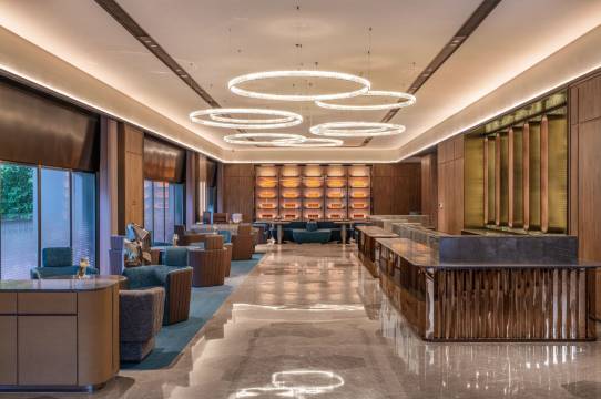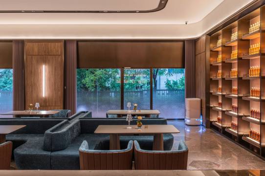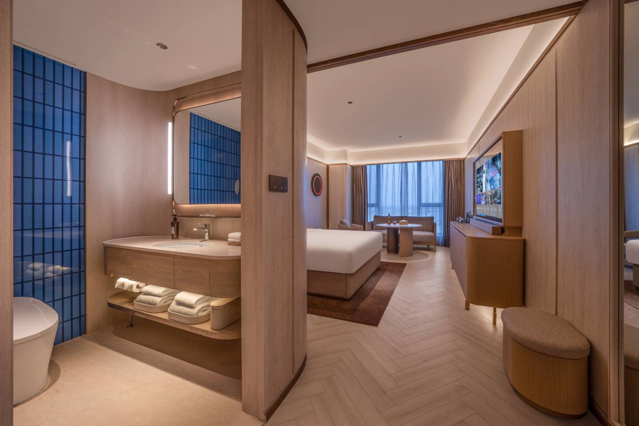 酒店距国展乘坐地铁仅一站地,车程8分钟左右;距离首都机场车程15-20分钟左右;周边环境幽美静谧,房间面积大布局合理,全落地窗,;欢迎您的入住;客房全屋选用自然的浅木色,沙发与墙壁配色一致,深蓝色/咖啡色背景板搭配同色系的窗帘,整个空间给客人感觉非常温馨,舒适。房间插卡取电,智能客控系统,控制房间电视,空调,窗帘,灯光等,标配智能马桶。床垫采用美国进口品牌丝涟床垫,高品质的床品提供舒适睡眠。大堂,电梯无限镜,极简,优雅我们自“水晶”的特性汲取灵感,打造独特的光影展示,微醺不再私有,夜晚不再孤单,以威士忌的名义,纵享朦胧,品一口定制威士忌,脱离繁忙的工作与闹市,这一刻,独享美好夜晚。