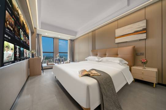 房间空间很大,宽敞不压抑,活动起来完全无拘无束~ 最戳我的是楼层够高,搭配整面全玻璃窗,推开窗帘瞬间被治愈 —— 阳光洒满房间,暖洋洋的特别舒服,白天看城市风景视野超开阔,晚上夜景也很绝!重点夸夸免费停车福利,自驾出行完全不用操心停车费和找车位的问题,太省心了~ 整体体验感拉满,不管是商务出行还是家庭旅游都很合适,已经推荐给朋友,下次来还选这家!