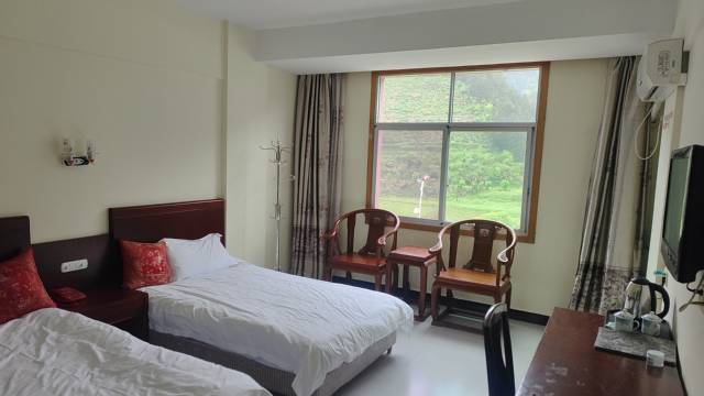 三清湖度假山庄;入住酒店可以买票上山;位于紫湖镇张领村320国道边.距离三清山金沙索道驾车约15分钟.山庄有部分红木大床房,标准双人床.三人房.可以同时接待住宿123个客人.餐厅包厢全部是红木圆桌.同时可以用餐160人.山庄门口是三清湖可以水上旅游.也有自己的钓鱼基地.本山庄适合避暑.康养.美食有三清湖生态鱼.土特产等美食.欢迎五湖四海朋友来旅游.