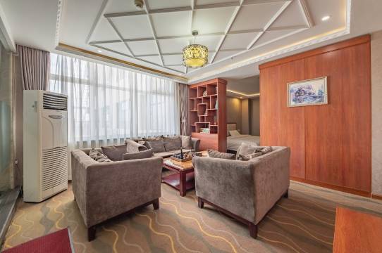 房间大,非常敞亮而且干净整洁,生活用品齐全,停车方便,服务热情性价比很高,前台特别负责房间也很安静