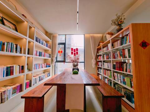 一家隐在寿县古城中的民宿,也可以说是书店,房间不多,上下两层共6间房,环境恬静舒适,布置充满了新春氛围,洗漱用品、毛巾、一次性拖鞋配备整齐,看着很放心,晚上的古城很安静,不用担心睡不好。步行去报恩寺、宾阳门都很近,旁边还有箭道巷美食街,可惜刚开业还没人气。据说以后会增加水吧,期待下次再去的时候可以喝上店里的咖啡。