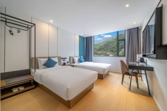 酒店房间很好,前台接待人员态度好,酒店门口就可以免费停车,酒店全屋智能,房间WIFI网速快,提供一次性洗漱用品干净卫生,离市中心也就一公里左右,步行过去也近,离景区也近,家庭出行旅游,商务出行都是可以选择这家酒店哦