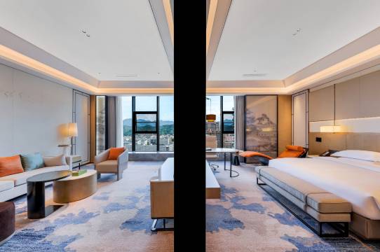 酒店由著名酒店设计机构设计建设,设施功能全,酒店集特色餐饮、康体养生、商务会议、文化体验、休闲娱乐等于一体,能够提供住宿、餐饮、会议、商务接待、娱乐康养健身等“一站式”服务,可同时接待500人入住、2500人就餐;服务品质优,室内恒温泳池、健身中心、图书馆、PTV娱乐会所等设施提供24小时服务;智能程度高,酒店充分运用人工智能、大数据、云计算技术,实现了5G数字时代全场景信息化、智慧化覆盖,全屋智能和24小时客房语音管家、送物机器人等智慧设施让宾客体验更加高效便捷,个人隐私得到更好地保护。