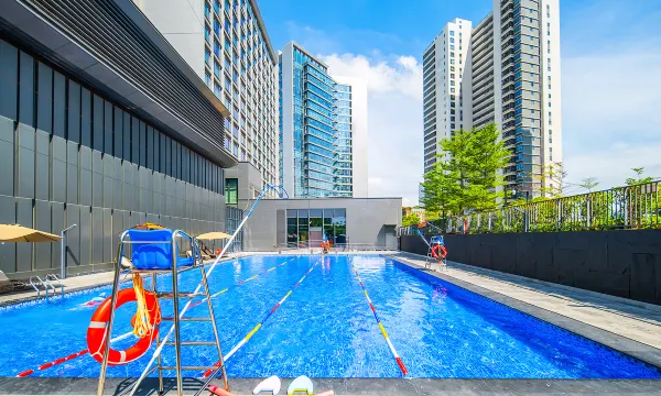 这次入住非常舒服,酒店门口停车场就有充电桩。过年开年还有醒狮闹堂。酒店配套泳池儿童乐园洗衣房。早餐厅不错。位置去万象碧海度假村,华发滑雪都在半小时左右。去东莞很方便。