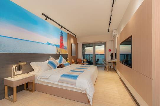 带娃入住的海景大床房体验感满分!床的尺寸够大,我和老公加上孩子睡一点不挤,床品干净得能闻到阳光味,孩子打滚都放心。卫生间干湿分离,热水稳定不忽冷忽热。早上拉开窗帘就是碧海蓝天,孩子看到大海直接欢呼起来,这次旅行的快乐一半都是这个房间给的!