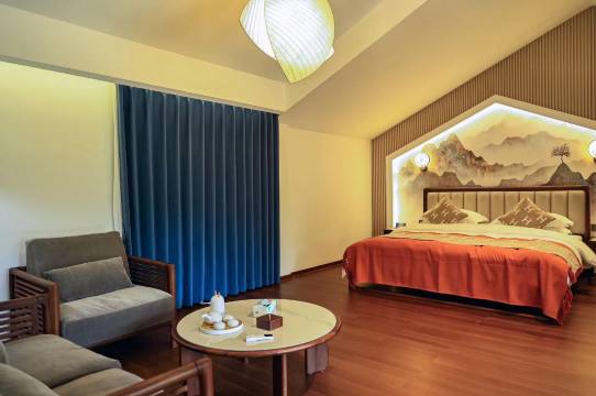 民宿环境很不错,外观看着特别霸气,卧室装修也很舒适,山景房,可以躺在床上看风景,视野开阔,休闲度假的好去处,推荐