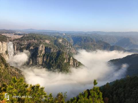 雾太大没看到瀑布,只能想像。但是很美。