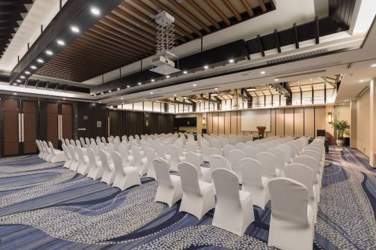 酒店共上下五层,一楼为总服务台、VIP接待中心、大堂吧、贵重物品寄存室、行李寄存室、商务中心、四季茶餐厅、水幕观景台、多功能宴会厅;二楼为星宴中餐厅包房。三至五楼共有多间各类特色主题豪华别致的客房。