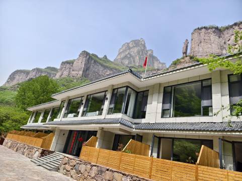 玉皇宫下,上达天河瀑布,下至桃花潭水,交通便利 ,停车位较多,房间设施如洗手池,智能马桶等参照的四星级以上标准,酒店身处山水之间,窗外即山,即林,即幽谷,即溪水,即蝉鸣,休闲养生,值得一来,再来,还来。。。服务很贴心,土豆炖鸡,烤羊排有特色,凉拌牛肉,小炒丝瓜,炒南瓜必须点赞!