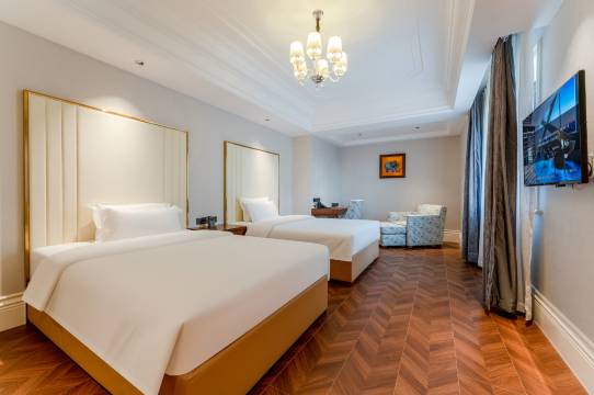 标间的床非常大,很适合带孩子出游的,服务很周到,房间干净整洁,早晨也很丰富,口味也很不错,地理位置也是中心。