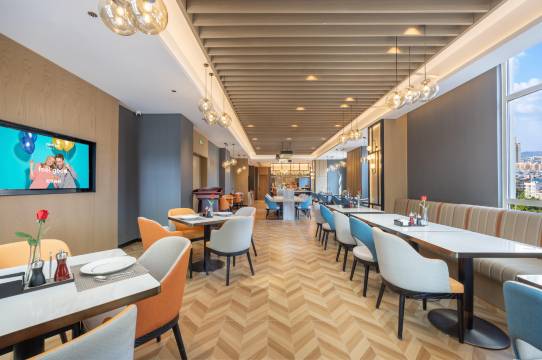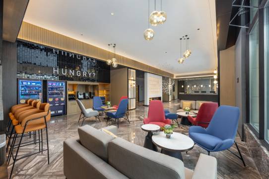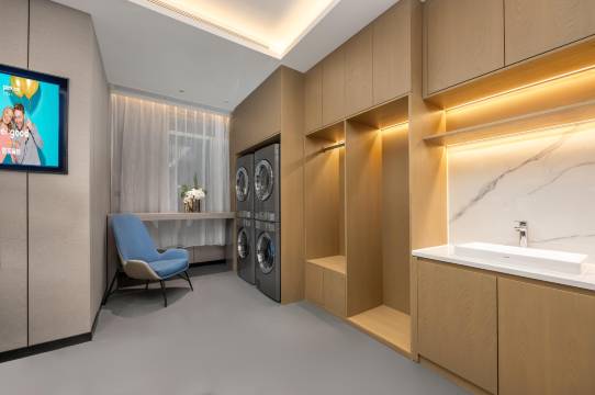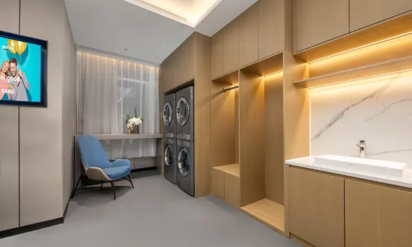 酒店环境非常豪华大气,一进大厅就感觉是很高档的酒店,酒店的设施非常齐全,有健身房还有洗衣房,还有智能机器人,非常便利,外卖都是机器人送到房间门口,简直太方便了,前台小姐姐们的服务态度也非常的好,很有耐心的告诉我们附近好吃的好玩的地方,像是与好朋友们交流,卫生方面也很出色,房间很干净而且很宽敞,性价比太高了!推荐推荐~