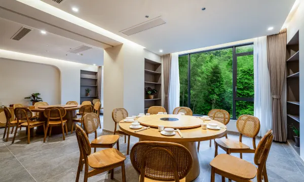 酒店是一家有温度的 治愈系休闲度假酒店 千帆过尽 归来“叙旧” 却话山海事,宛然林壑存。 【地理位置】 酒店坐落于蜀南竹海景区内,这里竹影婆娑,溪流潺潺,推窗即是翠竹清湖,赏心悦目,是一个充满生机和活力的地方。从酒店出发到景区西大门车程仅需5分钟。 【建筑特色】 建筑与自然相融合,内部空间着重关注人体舒适空间尺度,让空间与周遭自然环境无缝连接,引山水林木入室,浑然一体。 【尽享欢乐时光】 酒店内设施齐全,私汤泡池可放松身心,泳池带来欢乐,小卖部满足日常需求,烧烤与棋牌室增添乐趣,茶室和露天花园尽显惬意,超广角观山景河景落地窗带来震撼美景,会议室满足团队需求,还有竹海特色的“全竹宴”和精致川菜美食等待您的体验。是度假休闲、娱乐、游山玩水、团队建设、家人朋友欢聚叙旧、户内外团队拓展训练的理想场所。