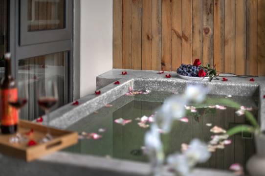 酒店位置位于竹海半山,位置很好。对面就是满是竹子的小山,边上有个烧烤店,不过声音不大,大概是淡季到晚上7点就不放音乐了,很是克制。酒店有大概8个停车位。值得一提的是酒店有个很牛的洗烘一体机,我出来玩十天的衣服都靠它搞定了,酒店前台有求必应,人也很nice,屋子里的设备基本没啥问题,私汤使用正常。走的太早,早餐没有吃不知道,好坏可以看看别人的评论。推荐入住。