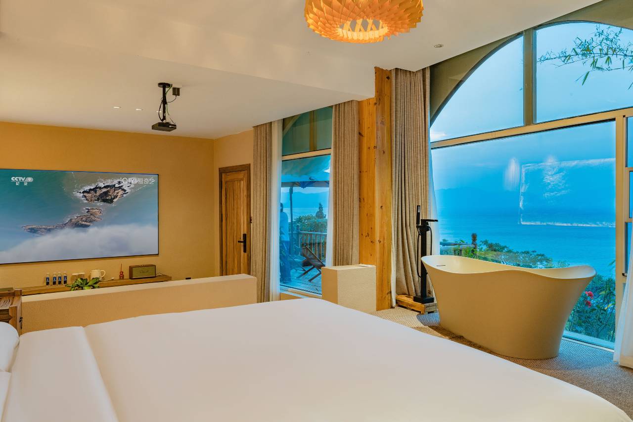 房间装修精致,干净整洁,有一个大大的露台,可以在露台上看抚仙湖美景!