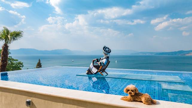 太棒了,来之前搜了好多攻略,看到好多人自来水推荐这家,抱着试一试的心态,感受就是很值得!到了管家会下来帮忙拿行李,然后坐一个小缆车上去。上去之后的视野超级好,比我想象的还要好。店家给我们免费升了房,还送了欢迎水果和晚安甜汤。房间更是没得说,装修很特别,全屋老木料的使用感受到了装修的用心。全屋智能使用方便,床垫睡着很舒服,各种用品齐全,就连拖鞋和浴袍都是用心准备的。躺在床上拉开窗帘就能看到抚仙湖,宛如仙境一般。如果有时间,真的想在这里待上几天,慢慢地感受。下次有机会一定会再来的❤️