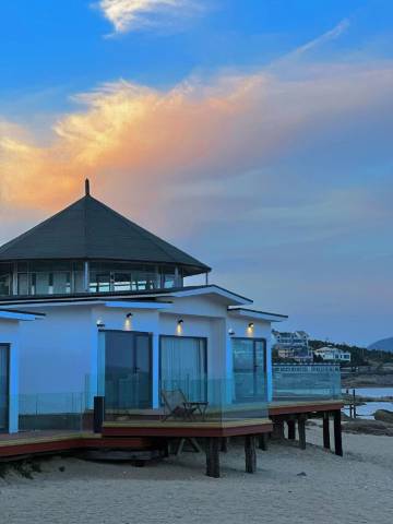 我们入住的是180度海景房,海景非常棒,躺在床上就可以欣赏到绝美的山海景,酒店管家服务,问题都是秒回,态度非常好,还有私人沙滩,带娃出行很方便,长辈和小朋友玩的很开心很满意,综合比较,应该是这一带最好的民宿了,下次来崂山还会选择住这里。