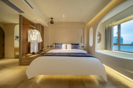 酒店坐落于花果园的心脏地带,白宫松花路地铁口的附近,这里为您提供了一个远离尘嚣的绿洲。 在这里,您可以放下一切杂念,尽情享受身心的放松和宁静。 我们以“洗个好澡,睡个好觉,拍张美照”为使命,诠释着我们的理念。因为我们相信,每一次的入住都是一段独特的旅程。 在这里,您是故事的主角,而我们,只是为您提供一个舒适的舞台。 无论是清晨的第壹缕阳光,还是夜晚的繁星点点,都将成为您美好回忆的一部分。 艺术的灵感源自于日常的美好,我们以酒店之名,却承载更多的情感寄托。 诚挚欢迎您的莅临,让心在此找到真正的归宿。 让我们共同踏入YUNSHUO高空私汤酒店,开启一段充满诗情画意的旅程。