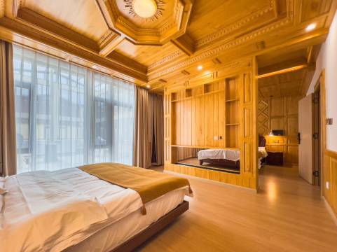 藏族人民真的好豪,天花板是实木的,床是实木的,半米多高的踢脚线是实木的,楼梯也是实木的,真是羡慕了呜呜呜😭……老板娘人很好,在古城旁边,不堵车,交通方便,不建议住古城里面,坑坑洼洼的路,车都不好走……这家门口停车目前没有收费~