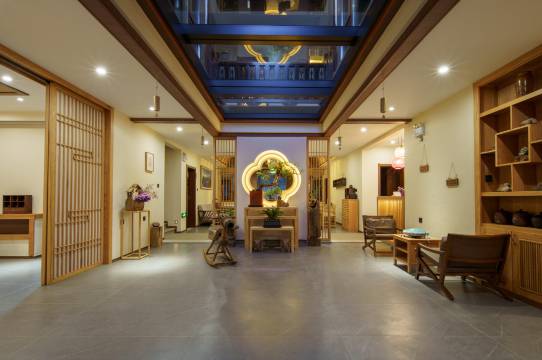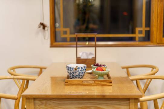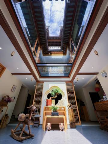 2、民宿的装修审美非常高,中式的风格 在整个小镇里都是非常顶尖的,一楼有茶室 抄写经书的地方, 门口的屏风都有精心设计 阳光透下来地面上形成云朵的光影,非常有格调