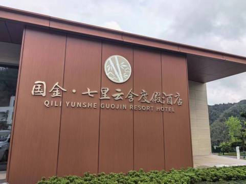 国金•七里云舍度假酒店是一家全龄段生态型综合度假酒店,配置有室外无边恒温泳池、健身房、康养中心、谷酿工坊、景观梯田、户外拓展等一系列配套设施、设备。酒店共分为三期建设,一期包含酒店公共区域、客房、餐饮包房4间、全日餐厅、宴会厅(18桌)等,一期占地面积8242平方米,建筑面积近1.5万平方米。