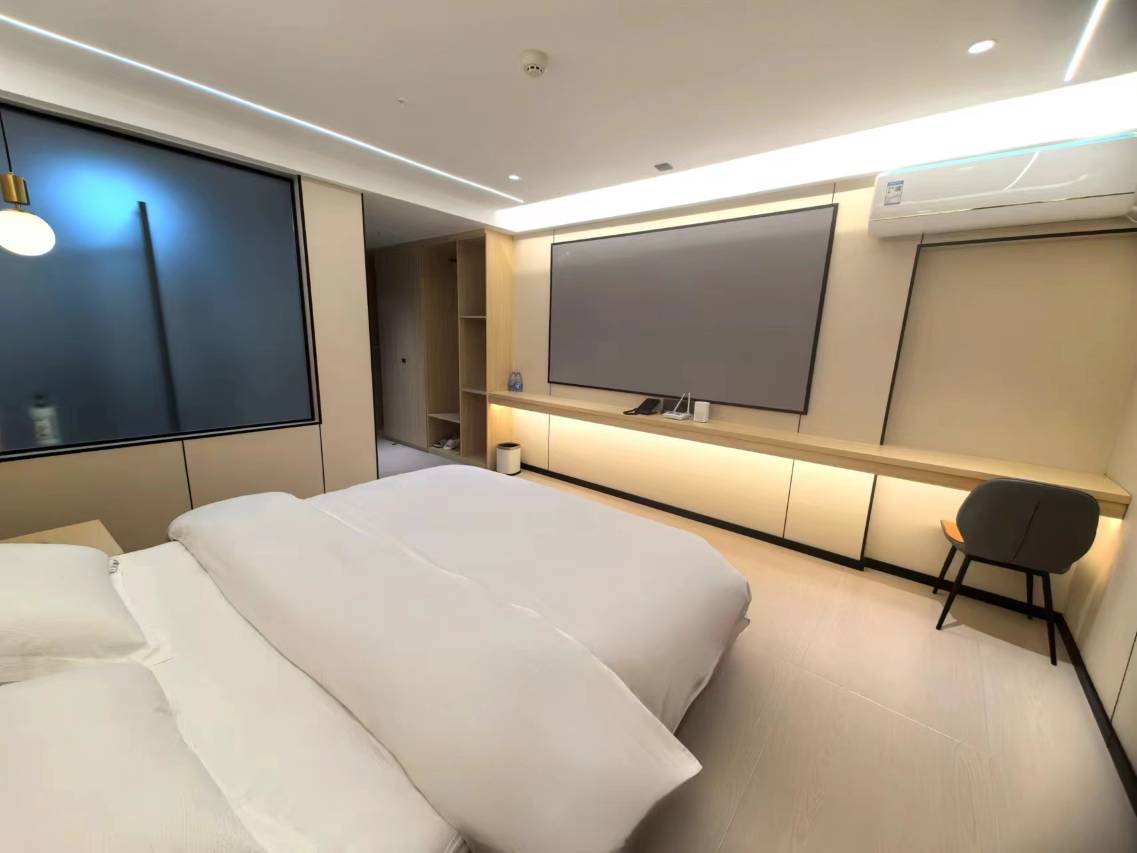 房间设施很好很新。卫生也很好。房间里有很大的投屏电视,晚上休息起来很舒服。而且交通很便利,周围有商场,去鲤鱼溪也很近。