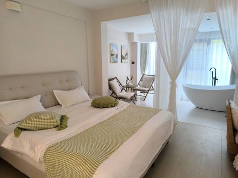 房间整体布置简约又温馨。床上用品干净又好看,睡起来柔软舒适,一夜好眠。卫生间的一次性洗漱用品质量好,包装精致,细节拉满。房间里还摆放着鲜花,增添了不少生活气息,让人心情愉悦。能感受到房东在布置和准备上花了很多心思,住在这里就像在家一样自在。我自己也是做名宿的,一帮都不愿意给好评,但是这家民宿确实做的好,推荐给大家!