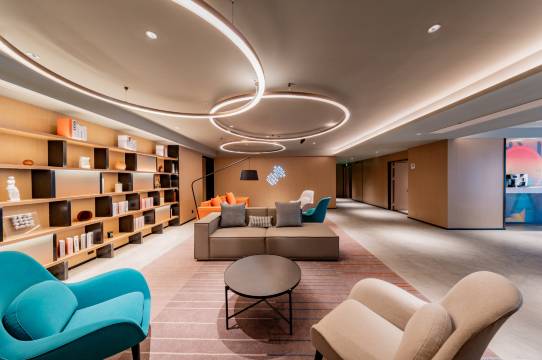 酒店位置好,标识清楚,房内设施(如电动窗帘等)人性化,洗漱等物品齐全,环境卫生干净整洁,窗外视野开阔。服务员工热情。