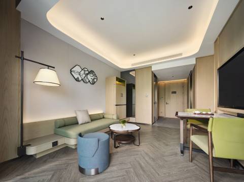 酒店地理位置很好,停车方便,吃也方便,边上趣园,红园,怡园,走路都可以到达,房间干净利落,洗衣服可烘干送房间特别适合我们带小孩的,酒店机器人咖啡机很棒,值得一住。