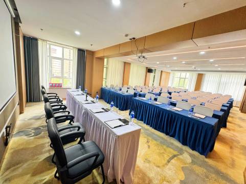 酒店占地面积约18000余平方米,设有前厅、客房、会议室、洗衣房、健身房等生活服务设施。酒店共12层,一楼为酒店大厅,二楼至十一楼有酒店客房、洗衣房、健身房、餐厅、会议室等,客房设有标间、大床、三人间、套房、家庭房等多余间,共有床位多余张。其中餐饮包间多余间,多功能会议室多个,可满足各类会议需求会议。