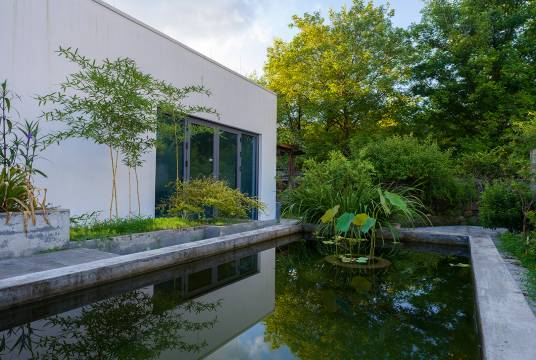 环境与细节:建筑周围种植香草,里桃花潭区域较近却几乎没有蚊虫。公共区配有书架与艺术品,文化气息浓厚;客厅成为自然交流的场所。空气与光线干净通透,动线顺畅,采光稳定,呈现出国际化的精细与秩序感。