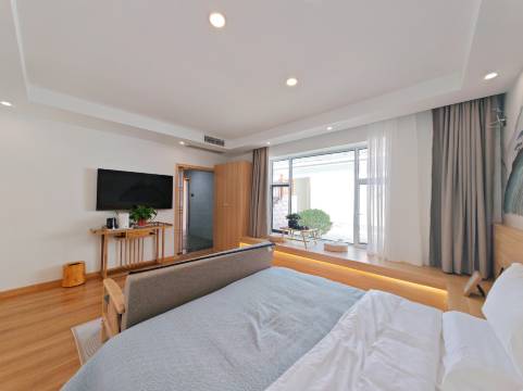2:民宿在景区门口,步行500米即可,抬头可见贵清山!民宿房间装修风格简约现代,舒适又保护隐私空间!