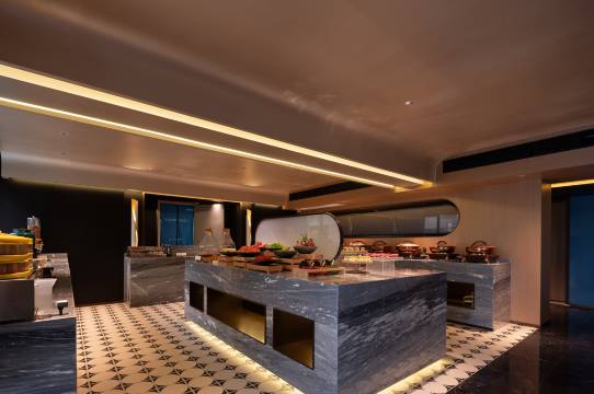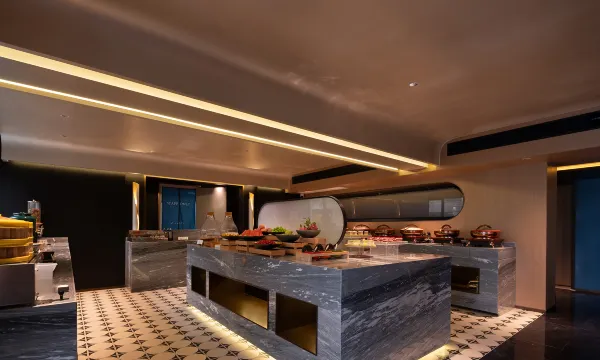 位置很好找,离地铁口与观山湖公园很近,周边吃饭也很方便。Wi-Fi网速很快,视频会议完全没问题。早餐种类丰富,中西结合,吃完元气满满的。饮品卷可以在吧台免费兑换饮品,性价比超高,以后来这边就锁死这家了!