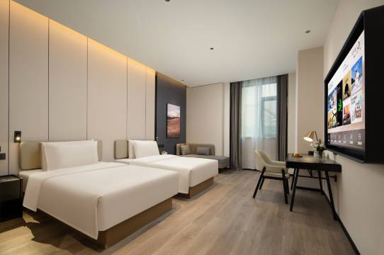 入住体验更是惊喜满满。办理入住时,前台工作人员热情又耐心,不仅详细介绍酒店服务,还主动分享周边游玩小贴士。进了房间更是眼前一亮:干净整洁不说,布置得特别温馨,亚朵记忆枕贴颈又舒服,晚上沾枕就睡;卫生间干湿分离,智能马桶用着很贴心;房间里的小冰箱还提前冰好了矿泉水,细节里全是用心。