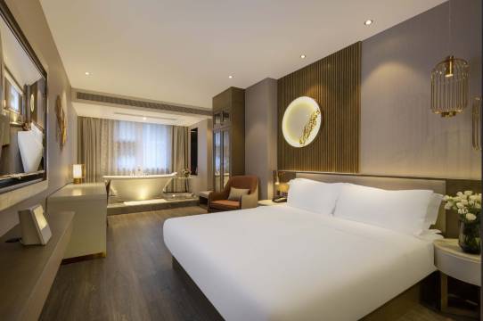 桔子水晶酒店是华住酒店集团旗下中高端品牌酒店。酒店由国内著名设计师设计,以浪漫、时尚、精致为设计主题,充满着艺术气息。客房共有7种设计风格的房型,均配备55寸液晶电视,蓝牙音响、小冰箱等,设施完善。酒店隔音系统由清华声学所设计,给您一夜安静睡眠。