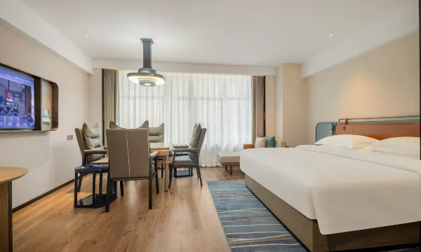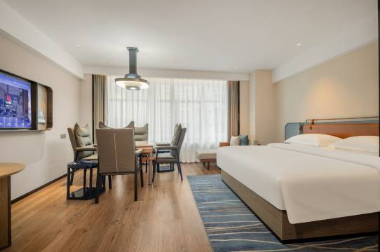2024年开业,一切都是崭新的。客房的嵌入式阅读灯特别好,三人沙发可坐可躺,舒服,还有很大的挑窗,晒太阳。瓶装饮用水无限量供应。酒店四周是商业街、美食城,午餐和晚餐很方便。