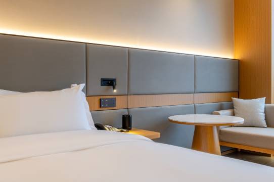 酒店环境优雅,装修风格简约大方。房间宽敞明亮,采光很好。服务人员态度亲切,入住和退房都很顺利。周边交通便利,出行方便。强烈推荐!