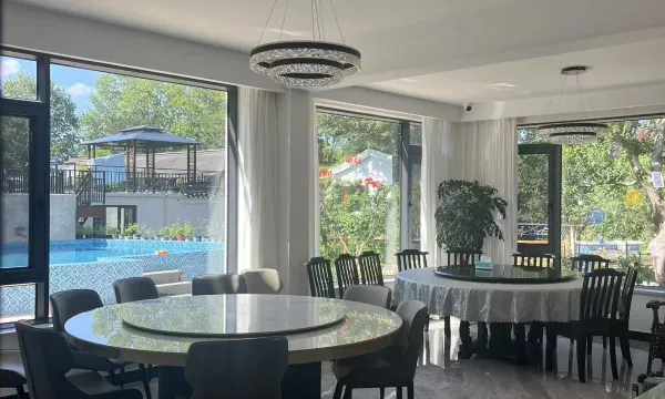 整栋民宿共计七百多平,设有多个房间(豪华大床房,标准双床房,亲子房等)。室内全松下中央空调(带纳诺怡功能,抑菌去味防病毒),独立卫生间,每个房间都是现代简约风,是朋友聚会,家庭休闲的理想场所。院子面积600余平,绿化覆盖,空气中负氧离子含量极高,有泳池,烧烤区,儿童游玩,棋牌室,包厢,还有一个充电桩方便客人出行。可以开展一系列娱乐活动。 位置特点 宜兴市遇涧民宿坐落在宜兴市湖父镇龙山特色民宿村,有一条贯穿整个村庄的溪流,是网红溯溪打卡点,民宿就在小溪边上,依山傍水,风景秀丽,这里有深氧,自然也有山湖,森林,竹海。周边宜兴阳羡生态旅游度假区4A景区集中。 雅达阳羡溪山、瑶湖小镇、 宜兴竹海风景区、 陶祖圣境、 龙池山风景区、张公洞景区。
