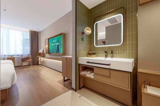 这次入住建国扉缦酒店的体验非常舒适,整体环境干净整洁,设计简约现代,非常适合商务出差或短途旅行。酒店提供免费早餐,品种丰富,包含中式热菜、凉拌蔬菜、水果、谷物和现煮饮品,满足不同口味需求。房间内设施齐全,配备加湿器、电热水壶、怡宝矿泉水及茶包咖啡包,细节贴心。卫生间干湿分离,洗手台配有带灯化妆镜和洗漱用品,使用方便。房间采光良好,窗帘遮光效果佳,床品柔软舒适,有助于快速入睡。酒店位置便利,周边交通便捷,适合前往大同各主要旅游地点。出行非常方便,整体性价比高,服务周到,是值得推荐的住宿选择。