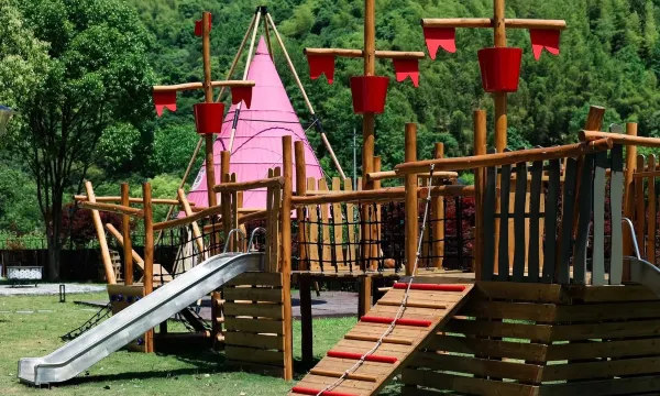 环境很好,门口就有小溪,背后全是竹林,天热小朋友可以玩玩水,酒店里也有很多小朋友玩的设施,很适合带小朋友来玩,值得来体验一次
