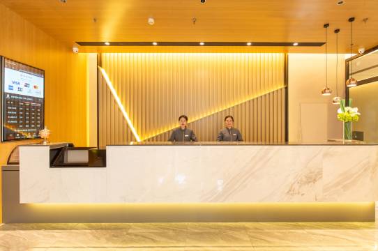 酒店前台服务台服很好,房间宽敞整洁,停车方便免费,交通出行便利,入住满意的,房间一如既往的好,干净呢
