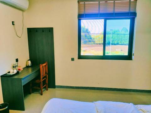 新开业的,设备和毛巾都是新的,环境还是可以,还能免费洗衣服,靠近路边的房也不吵,因为车少,可能吃东西不太方便,周边工厂较多
