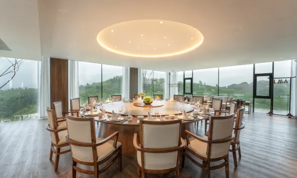 丹寨万达美华别院位于贵州丹寨龙泉镇万达茶园马寨基地,是由贵州锦润农文旅投资(集团)公司投资建设, 由“万达酒店与度假村”来管理运营的丹寨县高端民宿。在这里,我们可以极目远眺峰峦叠翠的重重苗岭, 可以零距离拥抱满眼嫩绿的万亩茶山。早观日出云海、朝霞满天,晚看落日余晖,云卷云舒。视线所及,都是美丽醉人的风景,一呼一吸,都是沁人心脾的茶香。别院占地27亩,内置22栋特色观景客房、服务中心、观景 餐厅、VIP包厢、多功能厅、茶室、咖啡厅、特色小吃店、特色文创集合店、蓝莓园、茶园等,这里茶舍背山面谷 ,四周树木葱郁,远山美景可观,藏着治愈人心的风景,酒店融合人文自然、乡居体验、休闲度假、亲子互动、 网红打卡的自然生态旅居新场景,被数万亩茶园环绕,拥有生态茶山自然景观,在这里你可以循着茶香在茶海漫游,与晨曦同行,住进风景里,看乡间烟火袅袅,人间至味,观朝霞落日,欣赏万亩茶园,云海日出,栖山 而居,与茶香相拥而眠,还有藏匿于自然氛围感的餐厅,品味美食,尽享茶香 ,所以生活不止囿于城市的喧嚣, 还有山野来风在轻拂,它就是这样一个住在风景里有山、有茶、有云海、推窗即是诗和远方的丹寨万达美华别院。