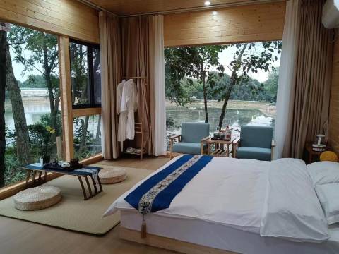 新中式小院+林涧独栋木屋+帐篷露营酒店。入住民宿可钓龙虾、钓鱼、功夫茶、棋牌等,都是民宿套餐标配。现、退役军人、消防官兵等,入住时请出示证件,民宿给8折优惠。早餐是标配,如需在民宿用午餐跟晚餐的,选择在民宿订房时请告知工作人员,选定餐标或菜品。