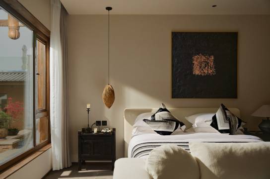 入住这家合院的合硕房型真的挖到宝了!一进院门就被雅致的庭院吸引,白墙黛瓦搭配青石板小径,角落的绿植和石灯透着江南韵味,随手拍都是古风大片。房间空间宽敞通透,家具是新中式风格,质感满满,配备的汉斯格雅卫浴用着超舒服,马歇耳音响放轻音乐的氛围感直接拉满。管家服务更是贴心,提前开好地暖,还送了下午茶,有需求响应得超快。夜晚坐在庭院里看星星,安静又惬意,完全远离城市喧嚣。不管是情侣约会还是家庭小聚都超合适,下次来一定还选这里!