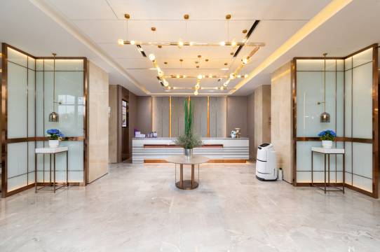 前台接待很热情耐心解答提出的问题,房间卫生很干净,隔音很好,酒店早餐很丰富,服务态度很好,送餐机器人很便捷。酒店对面有公园环境很好,步行500米就有烧烤一条街,附近还有石桥子早市很大。