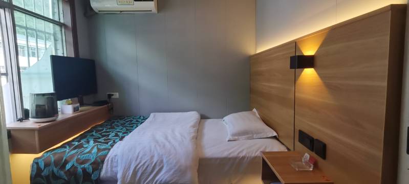 可谓是麻雀虽小,五脏俱全。虽然空间不大但是收拾的特别干净整齐,卫生也特别干净,前台服务态度很好下次出差还住这里